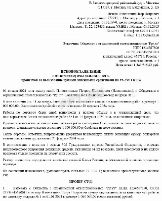 Иск взыскание пени процентов