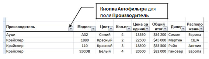 Использование автофильтра