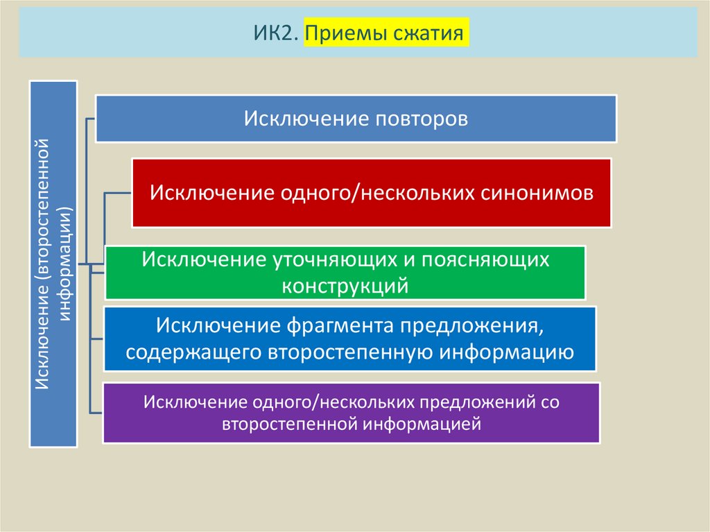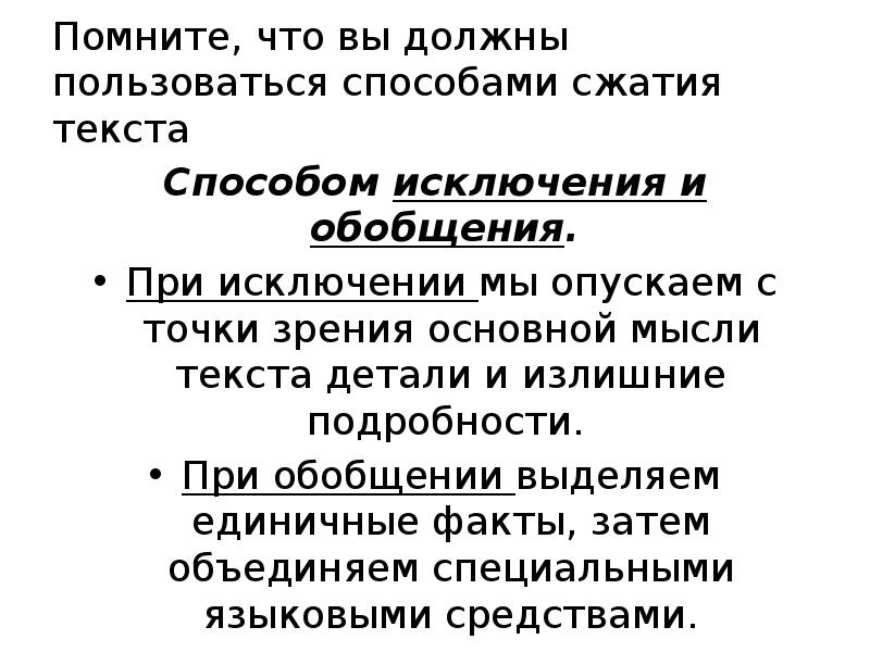Используя исключение как прием сжатия измените предложения
