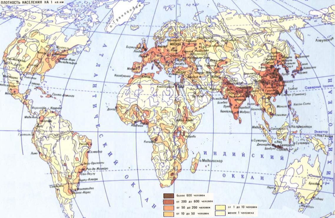 Используя карту плотность населения