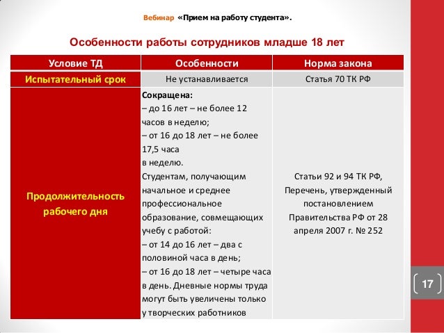 Испытательный срок может быть установлен не всем работникам! Так, в соответствии со ст . 26 КЗоТ испытательный срок при приеме на работу не устанавливается для: лиц, не достигших 18 лет;