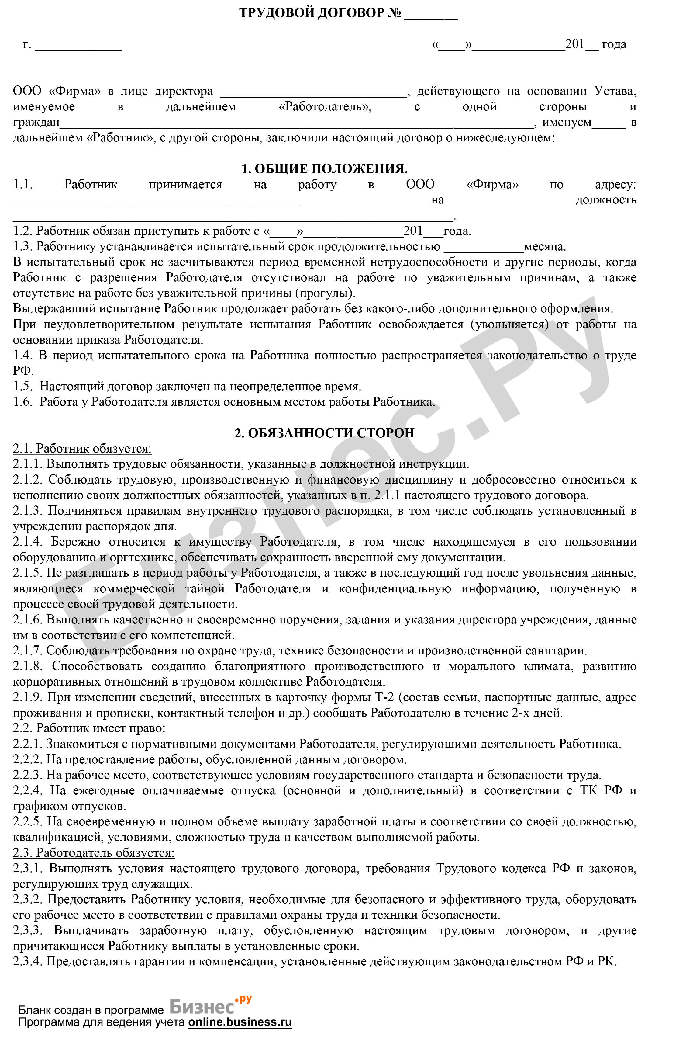 Испытательный срок бланк