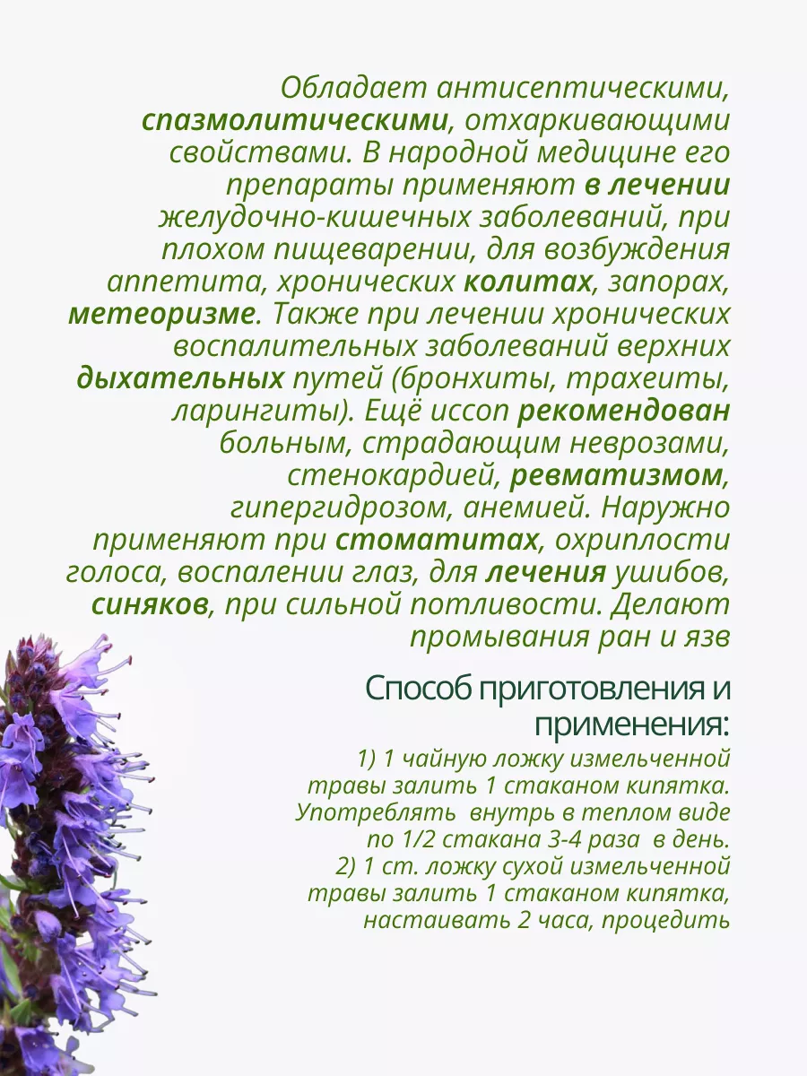 Иссоп лекарственный описание для чего используют