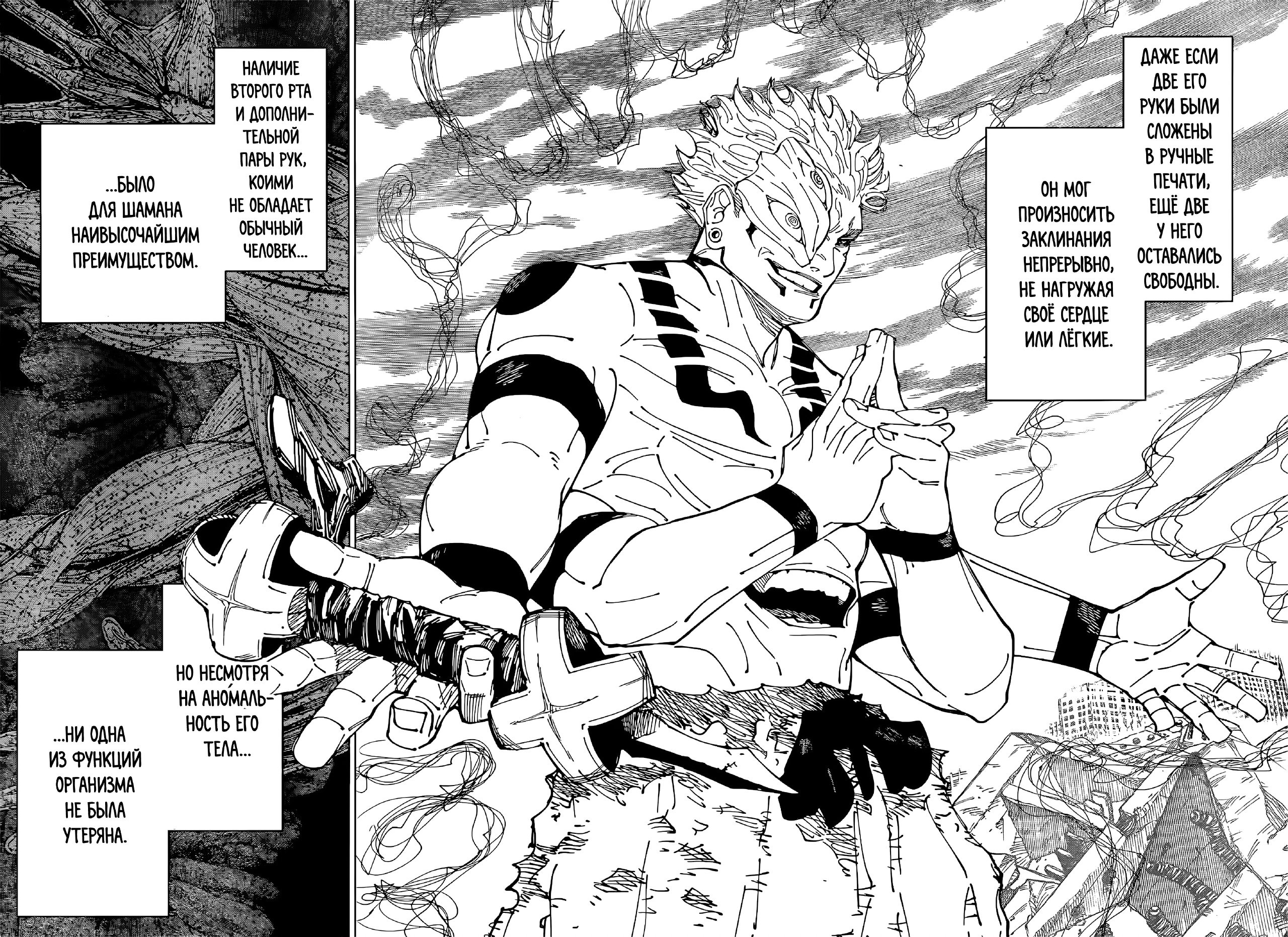 А что насчёт дополнительного рта? Тут намного проще, чем с руками, ведь за счёт второго рта, сукуна может одновременно и прочитывать заклинание, а вторым ртом уже спокойно дышать, тем самым, сердце Сукуны и его легкие в принципе не нагружаются как у шаманов и людей.