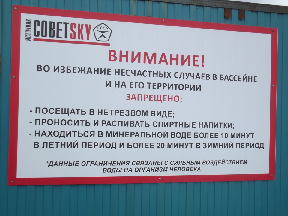 Источник «Советский» относится к гипертермальным, его вода нагревается до +45 °С . Болезнетворные микроорганизмы в ней не выживают, потому и в бассейн ее подают прямо из скважины, без очистки .