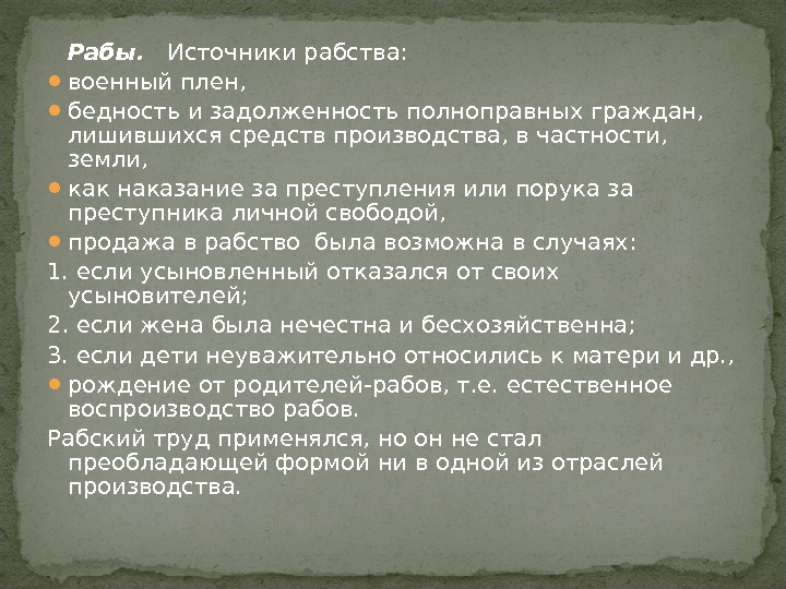 Источниками рабства были