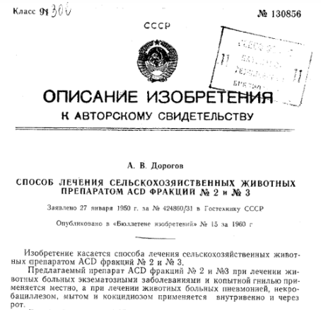 Начать стоит с того, что история создания АСД в значительной мере обросла мифами и легендами. Более того, погружение в историю препарата, вероятнее всего приведёт именно к мифологизированной версии. К великому сожалению, истинные обстоятельства его появления зафиксированы крайне фрагментарно, впрочем, это относится к значительной части разработок того времени. Более-менее достоверно мы знаем лишь примерную дату создания: 1947 г., а также то, что заявки на авторские свидетельства были оформлены в 1950 г. Поэтому нам придется рассматривать именно позднюю маркетинговую легенду, в которой и постараемся разобраться.