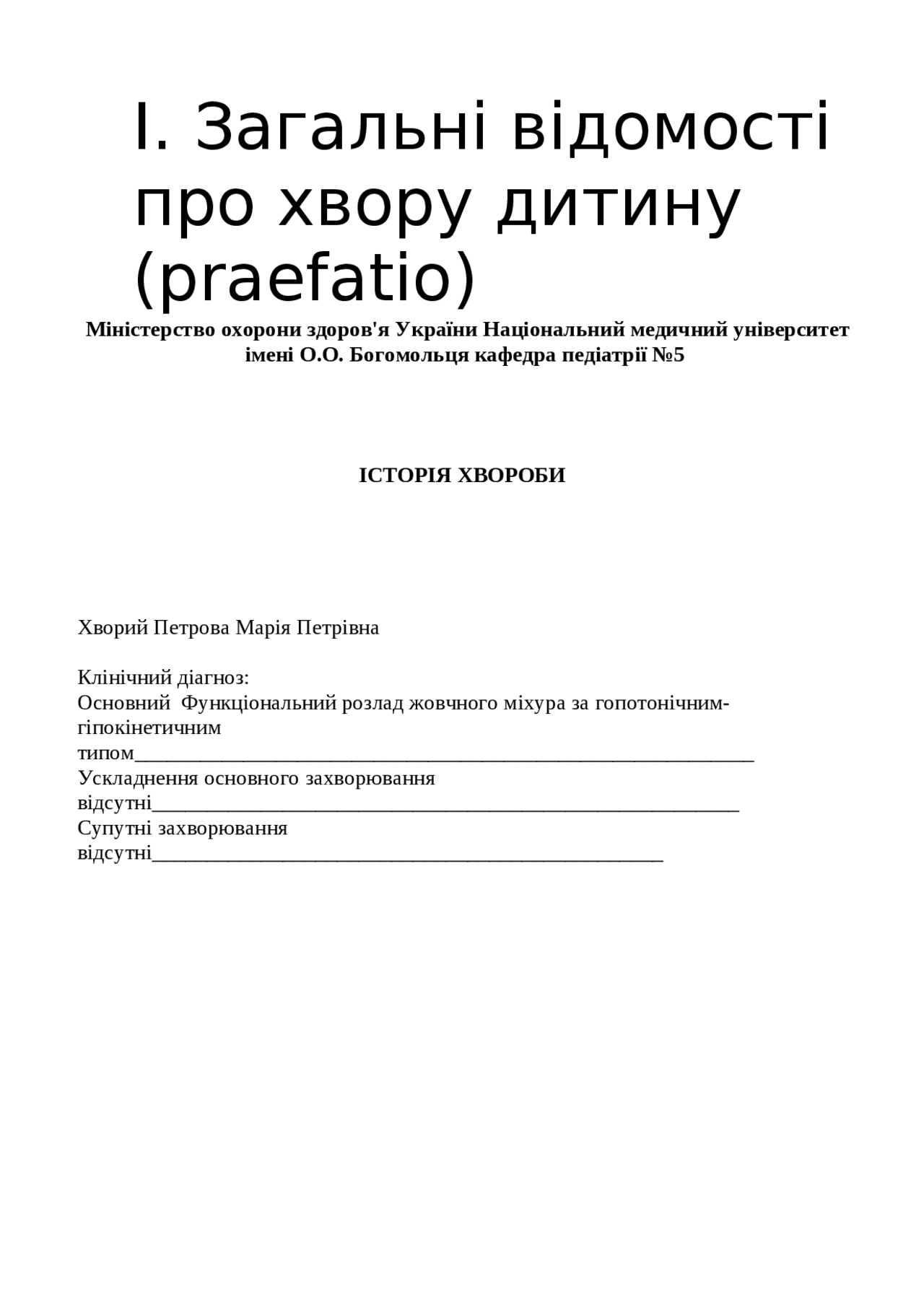 Название работы: Дискінезія жовчно-видільних шляхів по гіпотонічному типу .Страница 1 . Викладач:Історія хвороби . Рожко Юлії ІгорівниКлінічний діагноз: дискінезія жовчно-видільних шляхів по гіпотонічному типу .