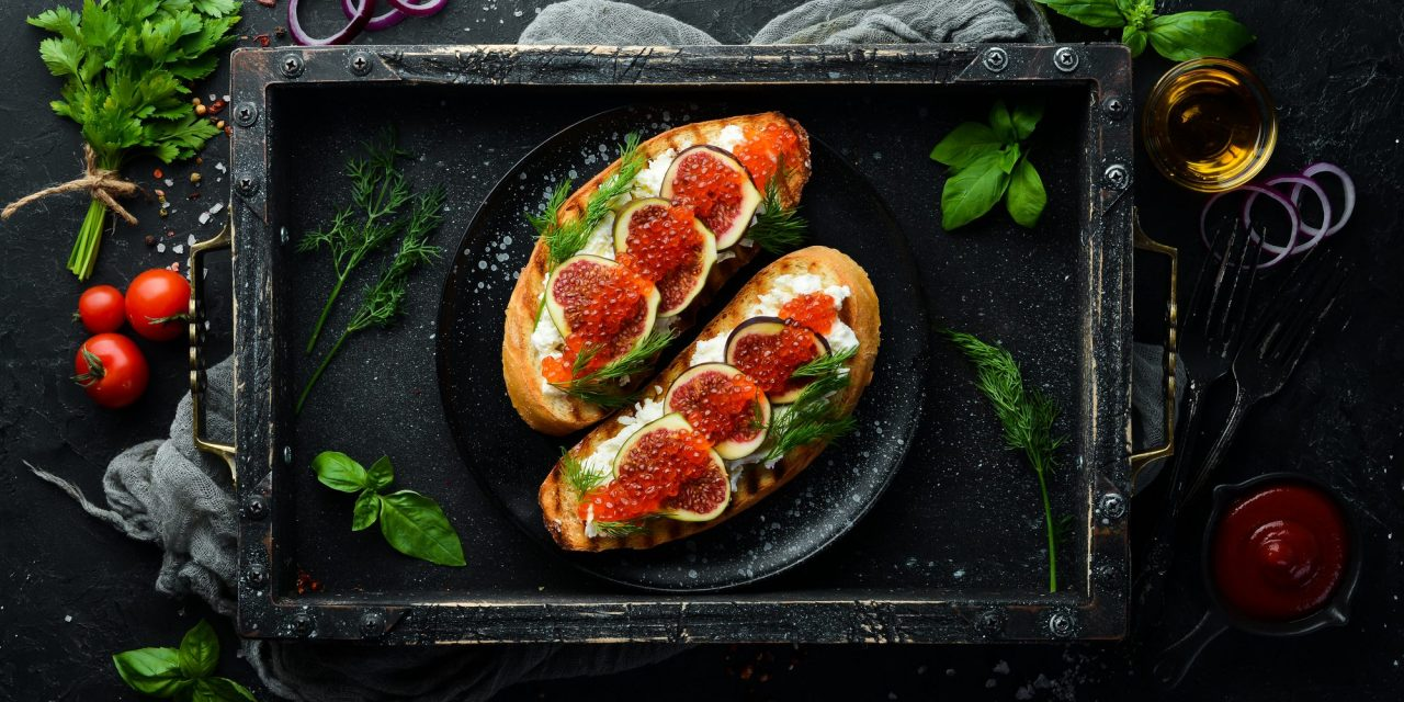 Брускетта с красной икрой, фетой и инжиром