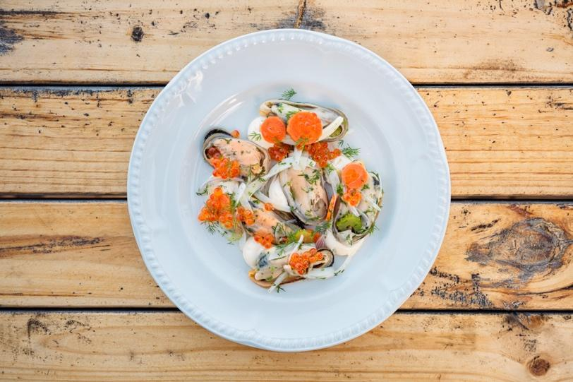 Маринованные мидии с лаймовым майонезом и икрой
