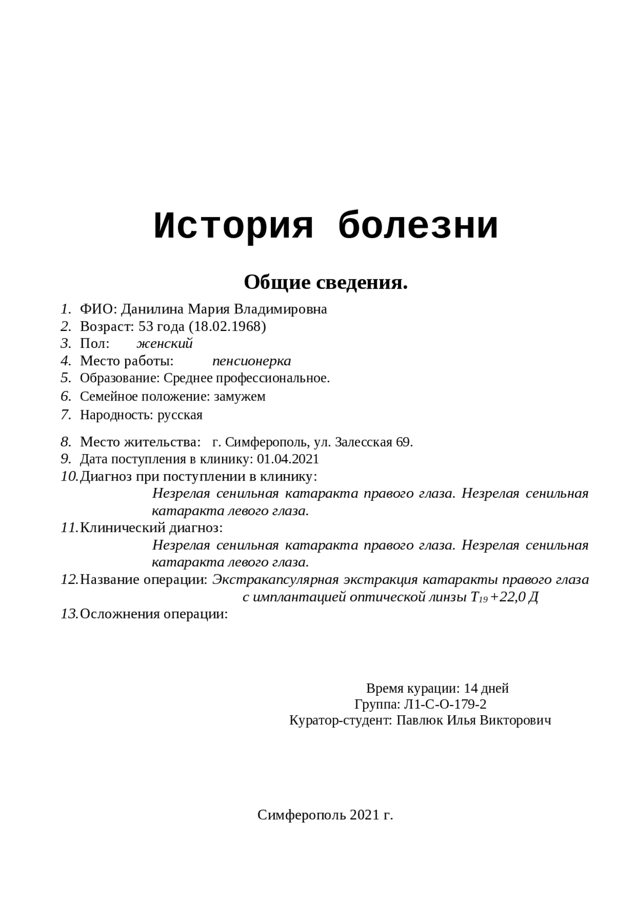 История болезни сайт