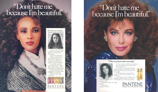 В конце 1980-х годов компания P&G выпустила новый продукт Pantene Pro-V, основанный на сочетании технологии шампуня «2-в-1» и оригинальной витаминной формуле. Рекламным слоганом для продвижения нового продукта стала фраза Don’t hate me because I’m beautiful («Не надо ненавидеть меня за то, что я красива!»). Фраза вошла в поп-культуру, однако вызвала противоречивые отзывы, и в 1990 году кампанию прекратили.