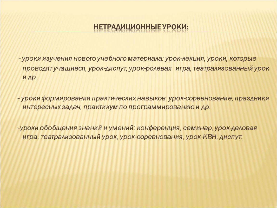 История нетрадиционных уроков