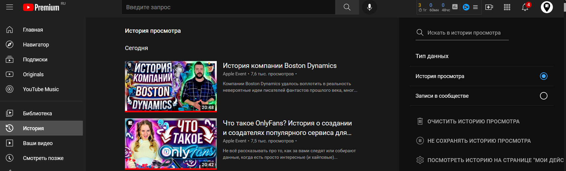 История просмотренных страниц