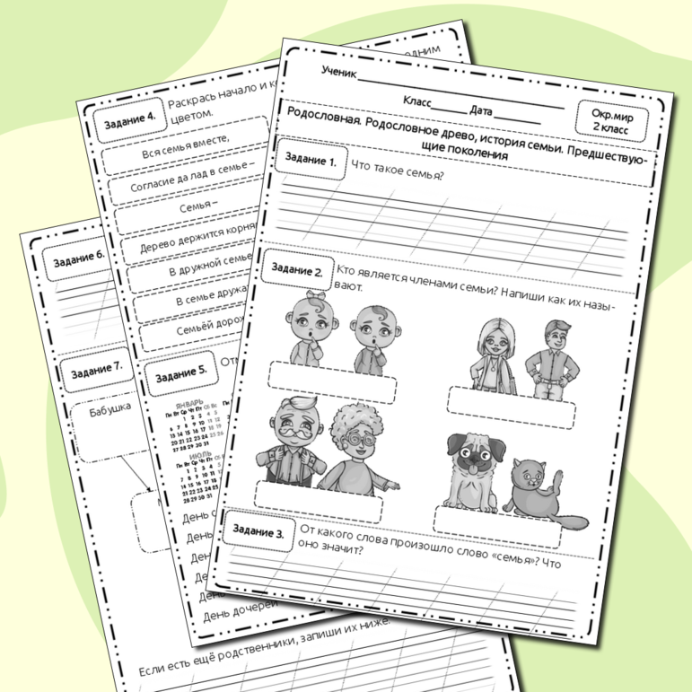 История семьи рабочий лист