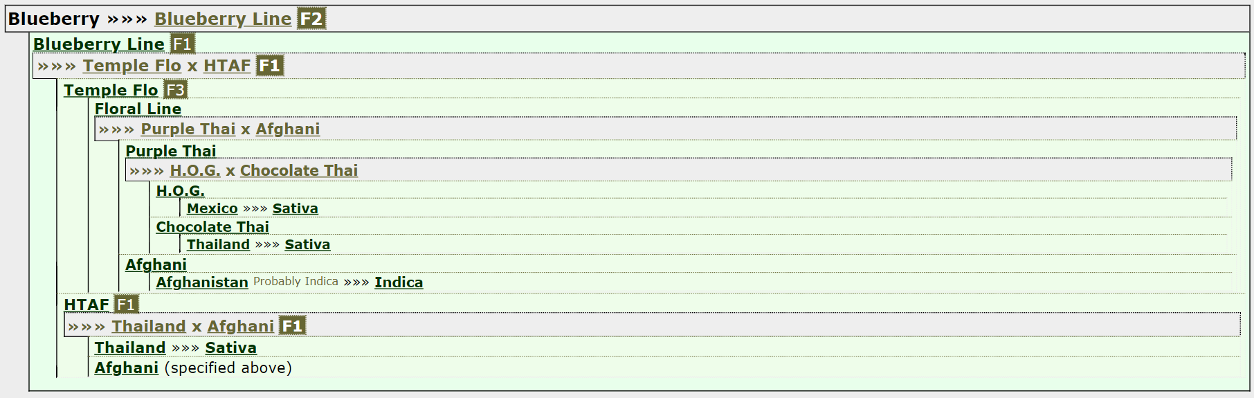 DJ Short начал с скрещивания своего Afhgani с девочкой Purple Thai, получив знаменитый Flo. Гибрид с преобладанием сативы. Flo затем был скрещен с гибридом Juicy Fruit/Afghani, чтобы получить Original Blueberry.