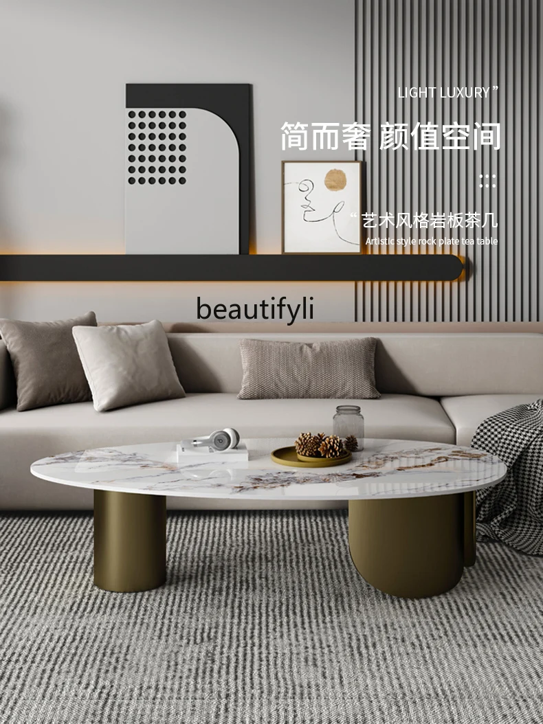 pyrlXfIWZHere you can buy Italian Light Luxury Stone Plate Coffee Table Modern Simple Home Designer Creative Trending Shaped Oval Marble Coffee Table with free delivery to your post office.