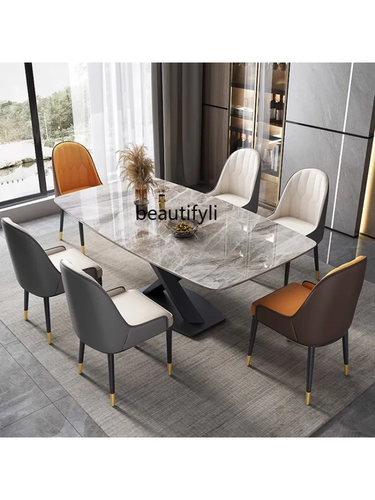 bEmvSHdUJIHere you can buy Italian Minimalist Bright Stone Plate Dining-Table Chair Combination Home Modern Rectangular Dining Table kitchen table with free delivery to your post office.