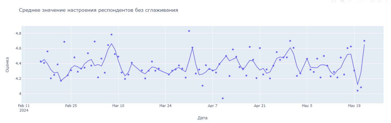 - Праздники и публичные мероприятие повышают среднюю оценку настроения респондентов