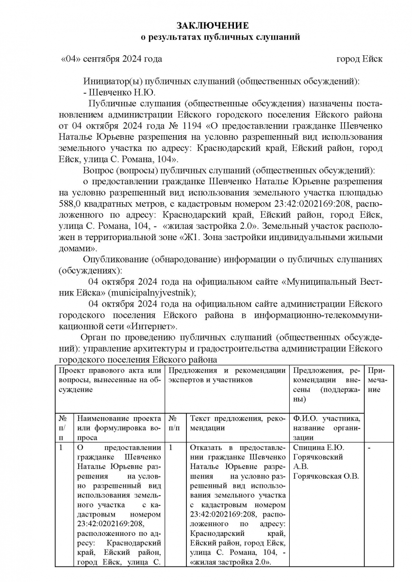 Итоги публичных слушаний