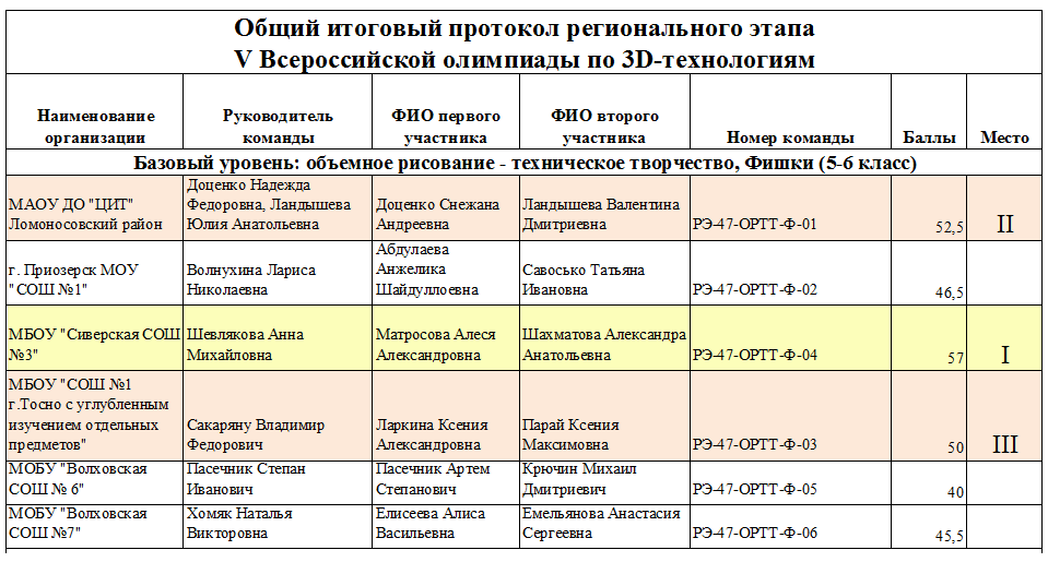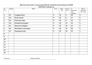 Итоговые протоколы олимпиады школьников