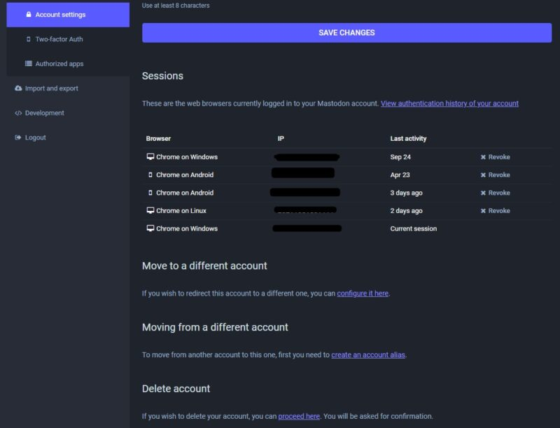 Серверы Mastodon существуют лишь усилиями энтузиастов, а значит, некоторые сбои в их работе всё же неизбежны и неминуемы. К сожалению, если ваш сервер внезапно прекратит своё существование, вы уже ничего не сможете с этим сделать. Однако, если бы вы узнали о закрытии заблаговременно, вы могли бы перенести свою запись на другой подходящий вам сервер: ваши публикации, лайки, подписки и подписчики также будут перенесены в новую учётную запись.