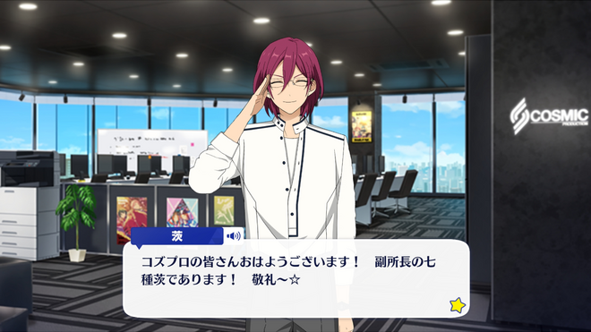 Ибара: Доброе утро, коллеги по CosPrо! Ваш вицепрезидент, Ибара Саэгуса, приступает к исполнению своих обязанностей! ☆
