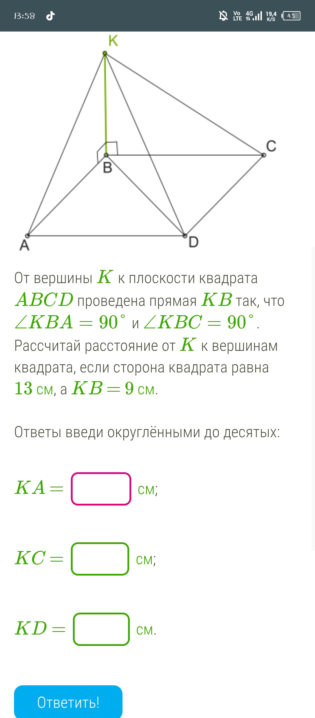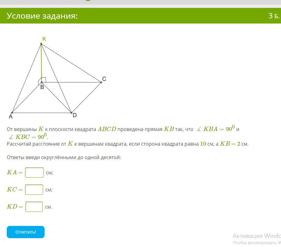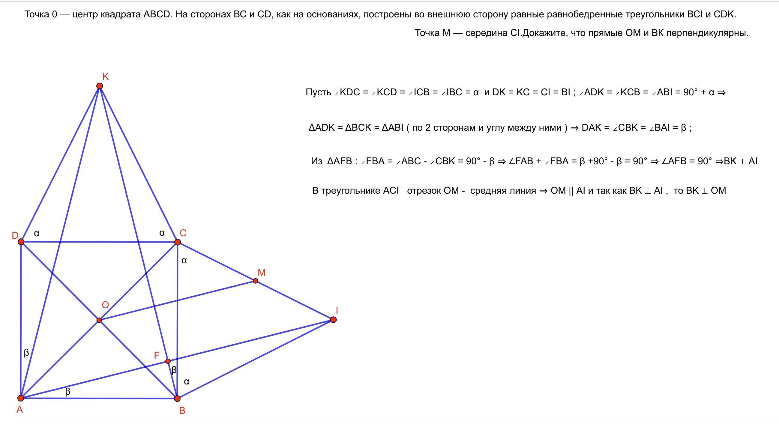 Из вершины д квадрата