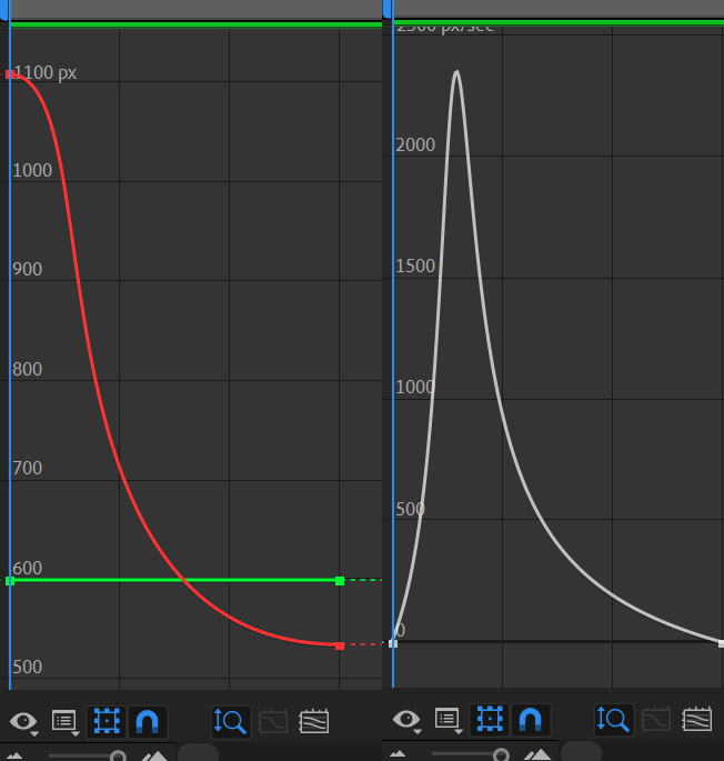 Приложил графики значений и скорости для наглядности, которыми пользуюсь в том числе, но в данном случае хотелось сильнее сделать акцент на плавном замедлении и подтянуть график ближе к оси Y.