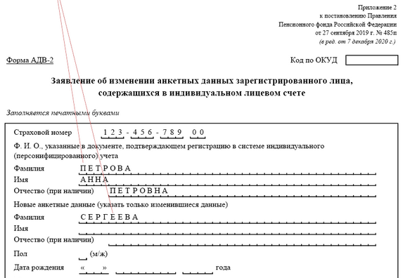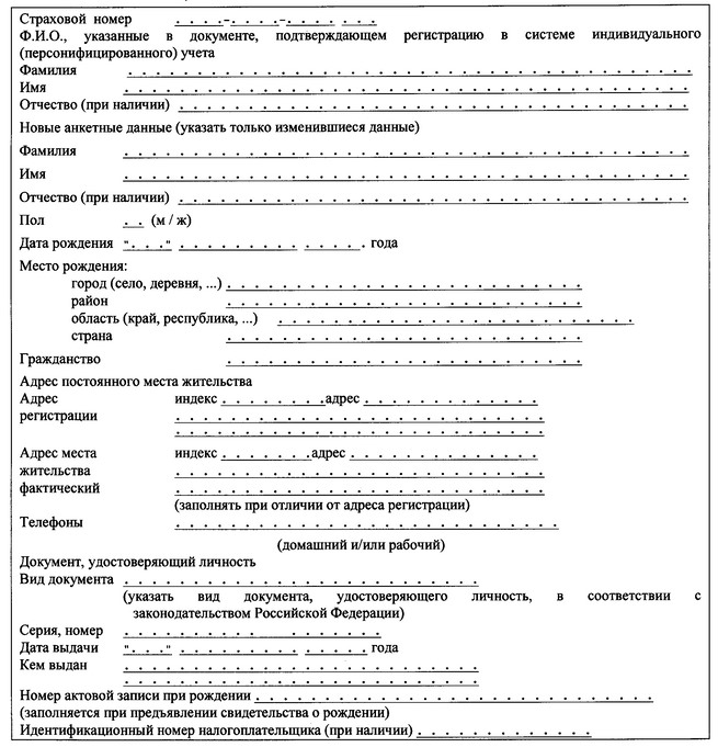 Изменение данных пфр