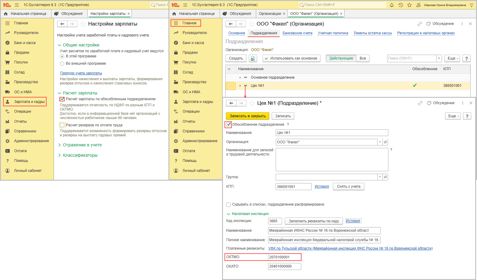 Изменить октмо в 1с 8.3