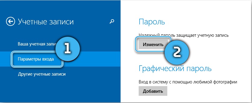 Изменить пароль для учетной записи