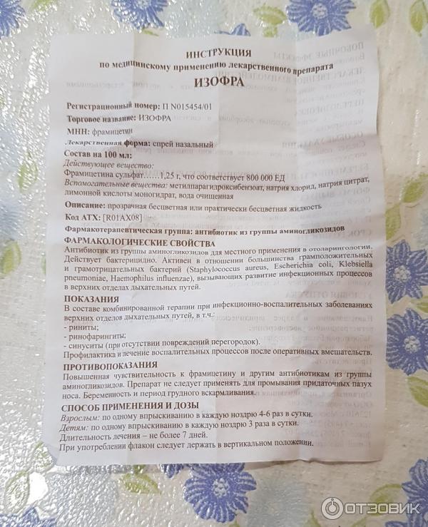 При частом ее использовании может возникнуть привыкание, и эффекта от лечения не будет . Изофра предназначена для борьбы с острыми и хроническими инфекциями верхних дыхательных путей .