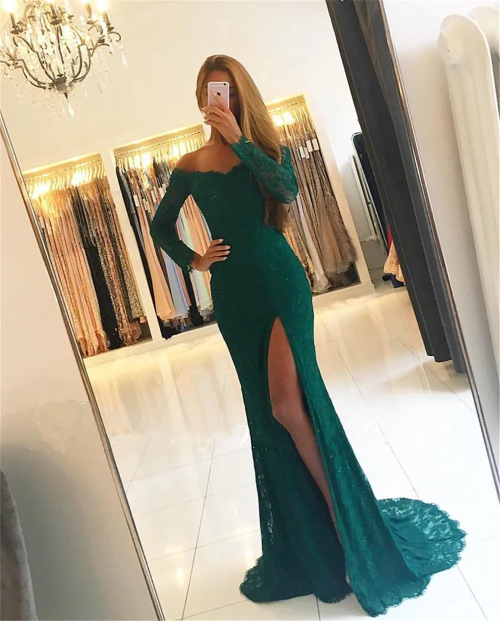 Изумрудные длинные платья