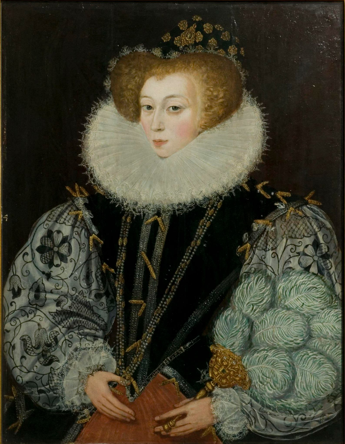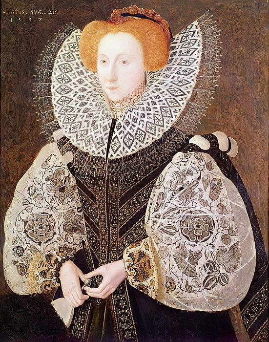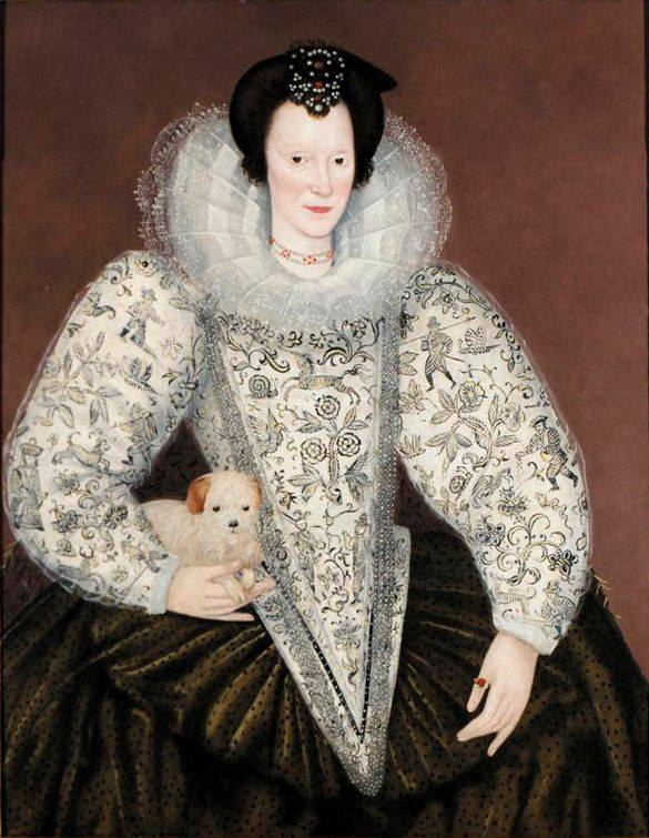 Неизвестная дама, написанная приблизительно в 1595 году предположительно Уильямом Сигером в корсаже и рукавах, вышитых чёрным с золотом.