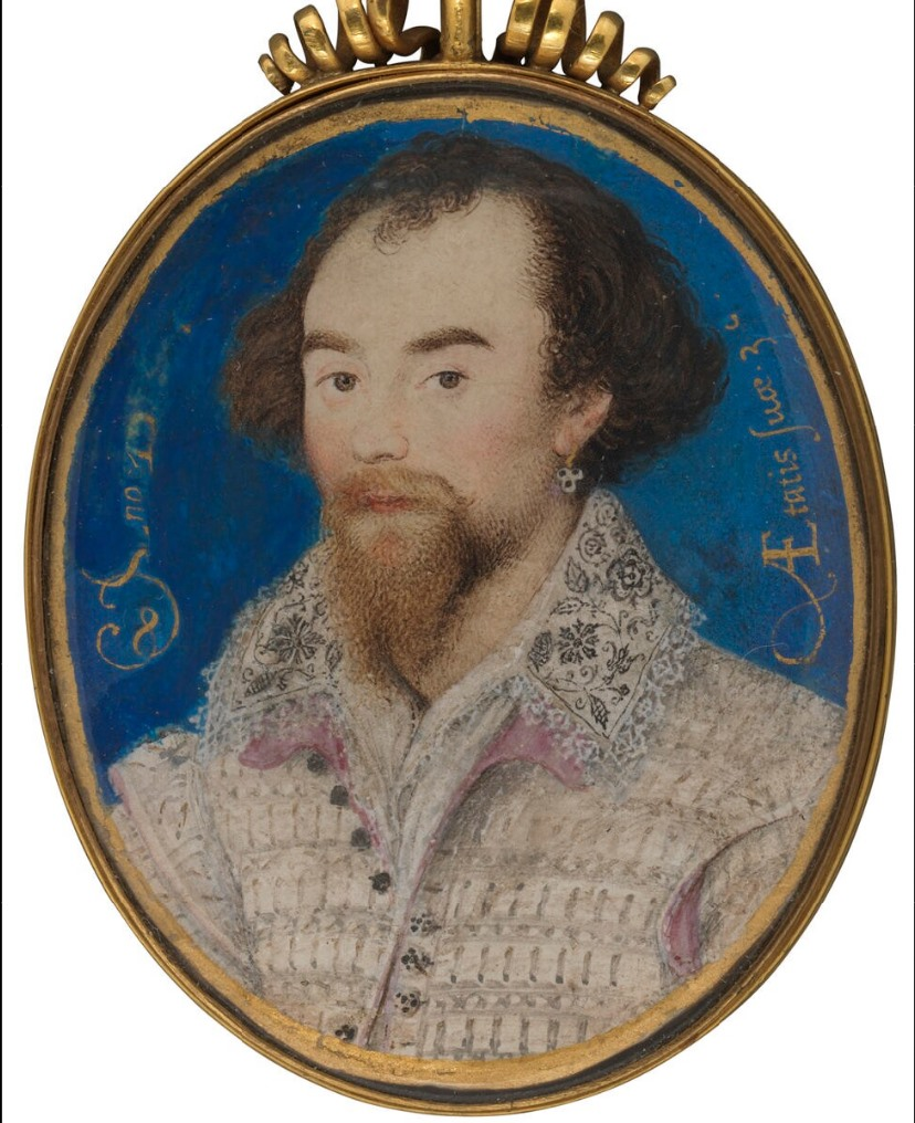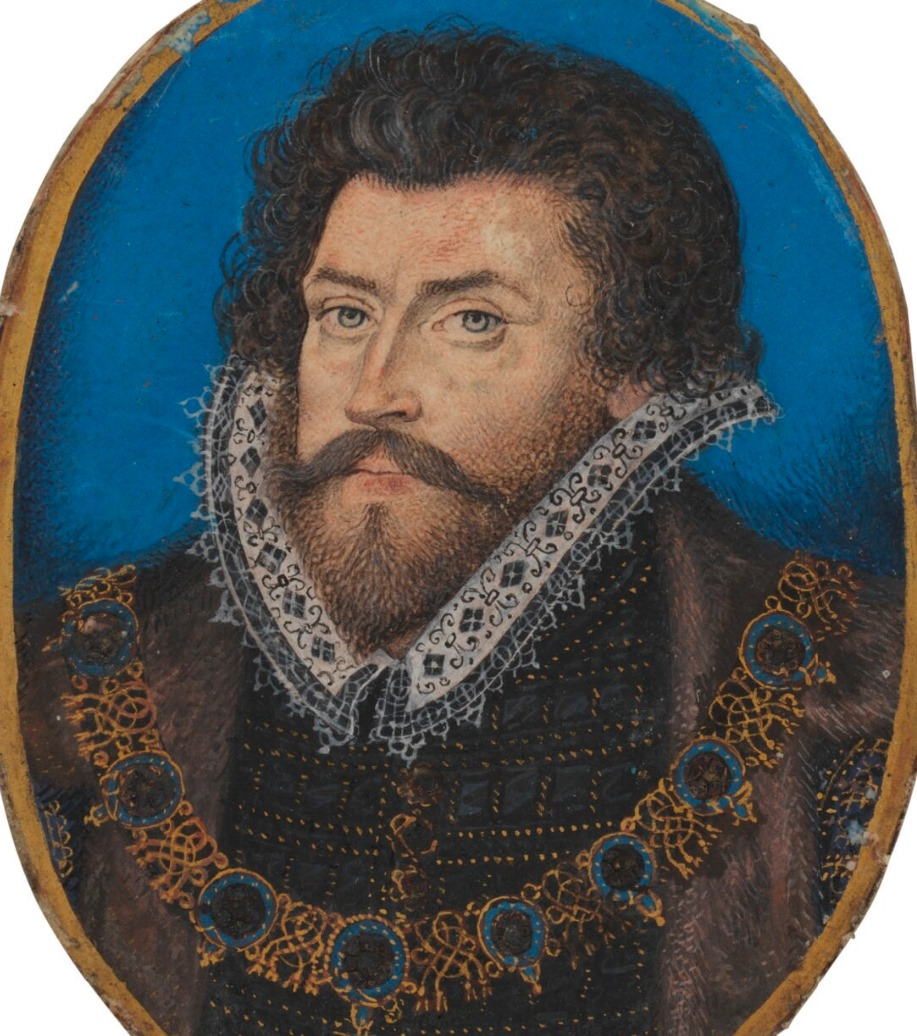 Или сэру Кристоферу Хэттону, лорду-канцлеру, на миниатюре также написанной Николасом Хиллиардом и тоже хранящейся в Национальной портретной галерее.