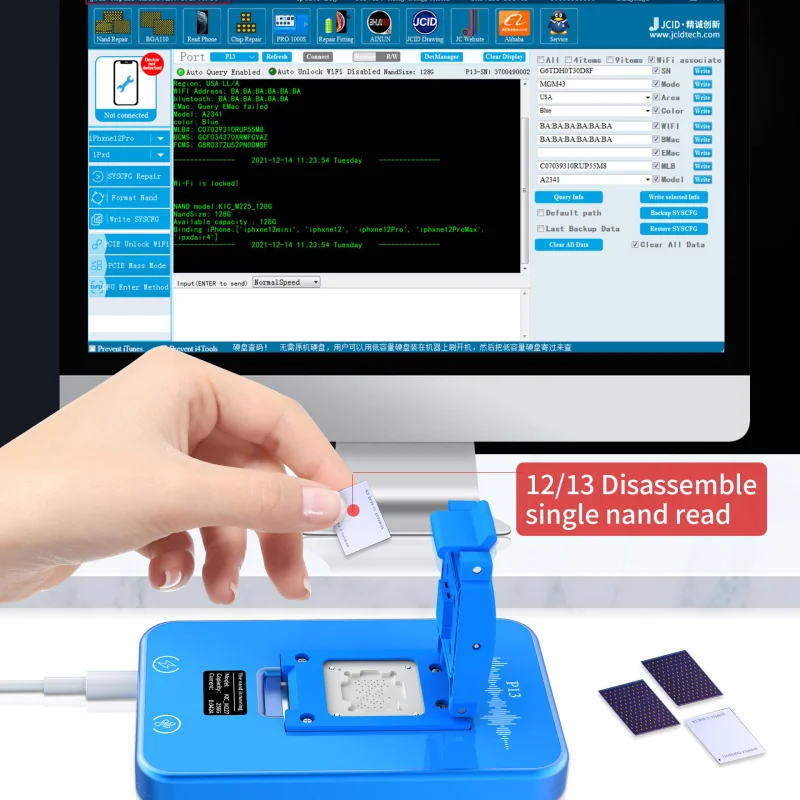 «JCID JC P13 Programmer BGA110 Nand for iPhone 8-13PM Repair Tool Set for Purple screen Unbind Wifi SYSCFG Data modify original» по лучшей цене на рынке! Всего за 254$ (24130рублей)