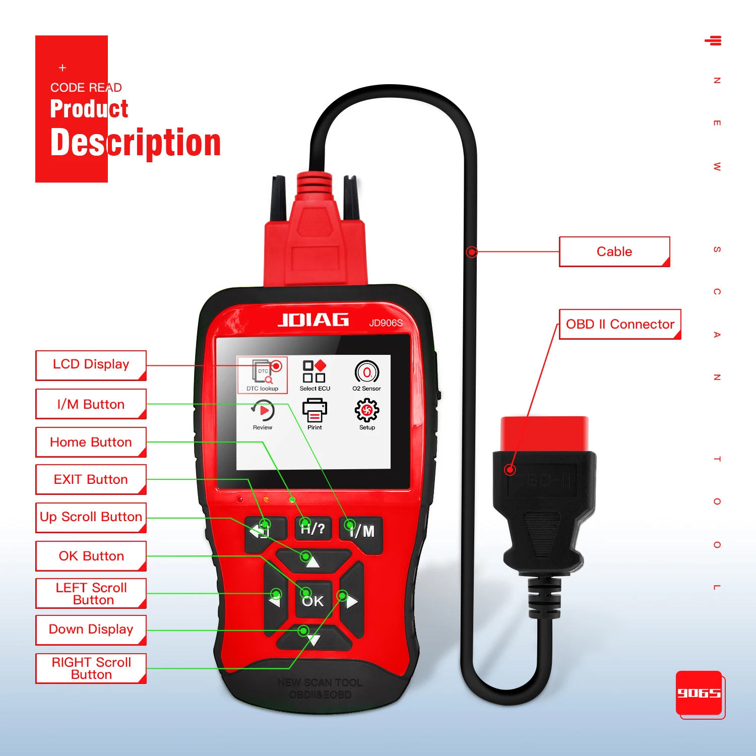 JD906S Code Reader New Generation Auto Diagnostics Tools OBD2 Scan Tool with I/M Readiness Mode6 , Mode 8 - Купить с бесплатной доставкой