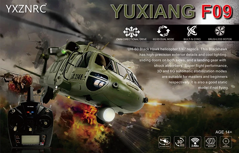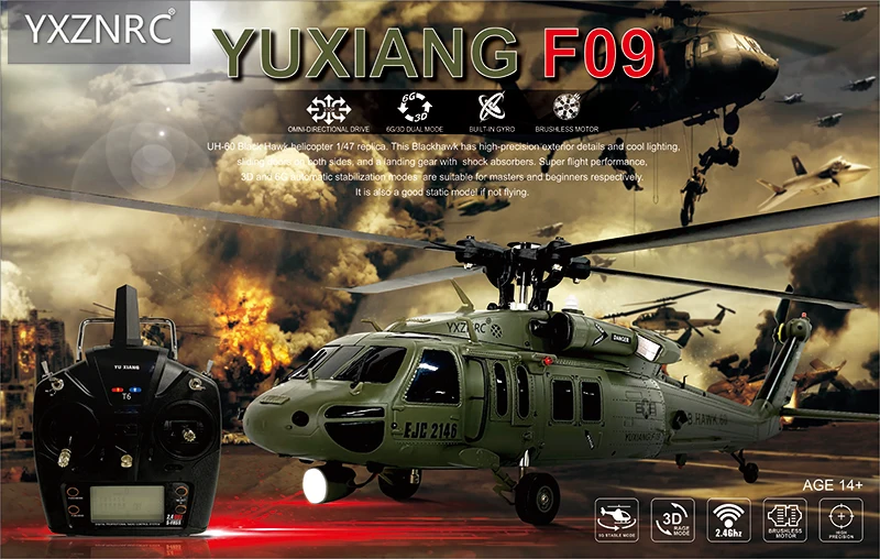 «JDHMBD F09 UH60 Utility Black Hawk RC Helicopter 6CH 6-Axis Gyro 3D6G Dual Brushless Motor RTF Compatible With S-FHSS Toys» по лучшей цене на рынке! Всего за 372$ (35340рублей)