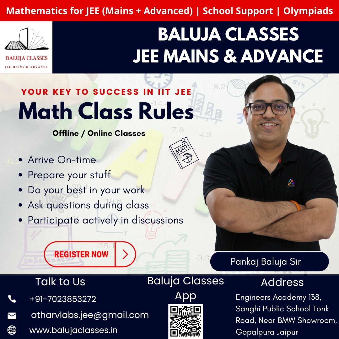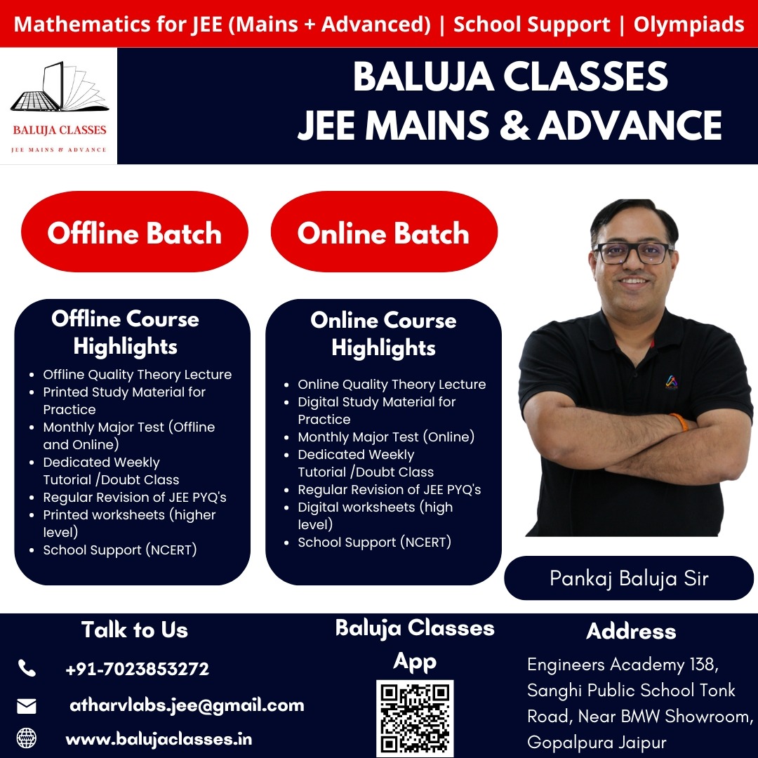 Baluja ClassesBaluja Classes is renowned for providing top-notch coaching for students preparing for the Joint Entrance Examination (JEE). Whether you're looking for the best math teacher in Jaipur or the JEE Advanced Maths Tutors, Baluja Classes has you covered. This article delves into why Baluja Classes is the preferred choice for students aiming to ace their JEE exams, especially in the subject of mathematics.