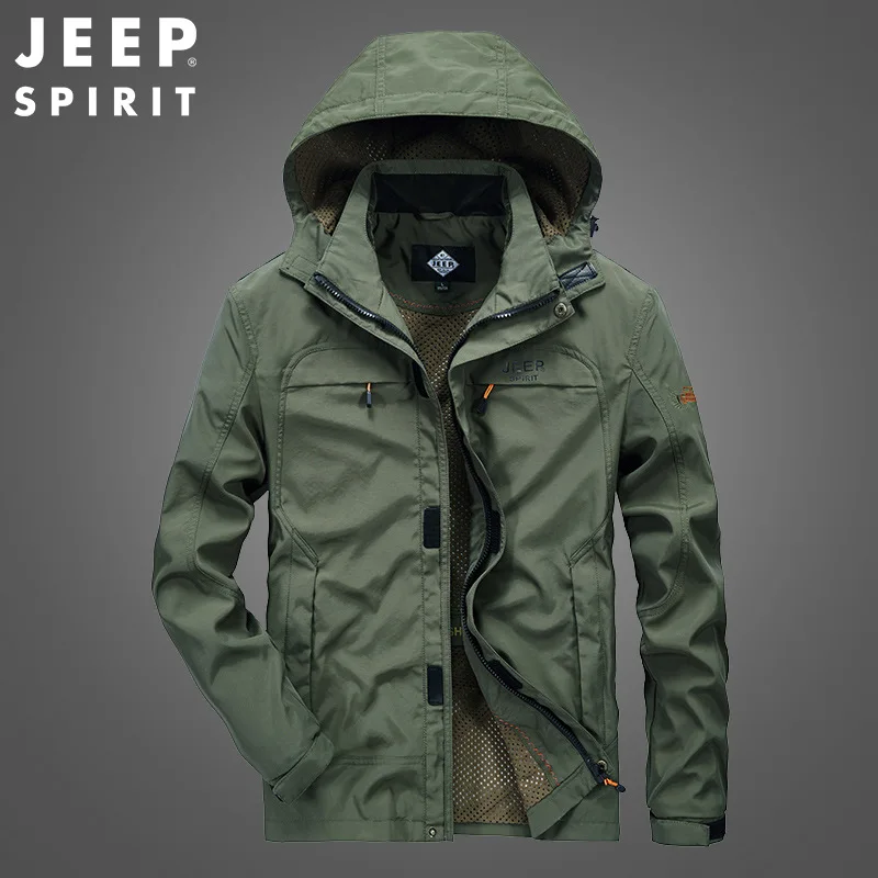 "JEEP SPIRIT men's jacket spring and autumn casual hooded removable cap mesh lined breathable comfortable high quality clothes" * Buy Now Just For 45$