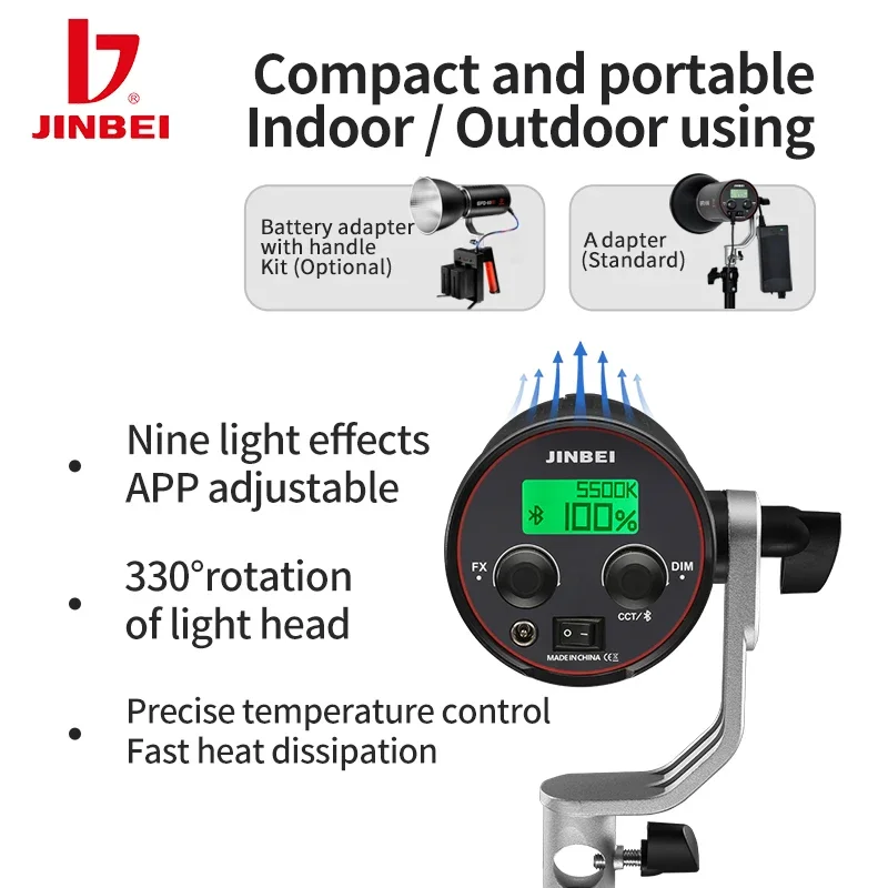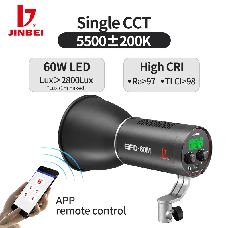 JINBEI EFD-60M 60W Studio LED Video Light Dimmable Bowens Mount Continuous Light For Live Streaming Video Recording With Battery - Купить с бесплатной доставкой