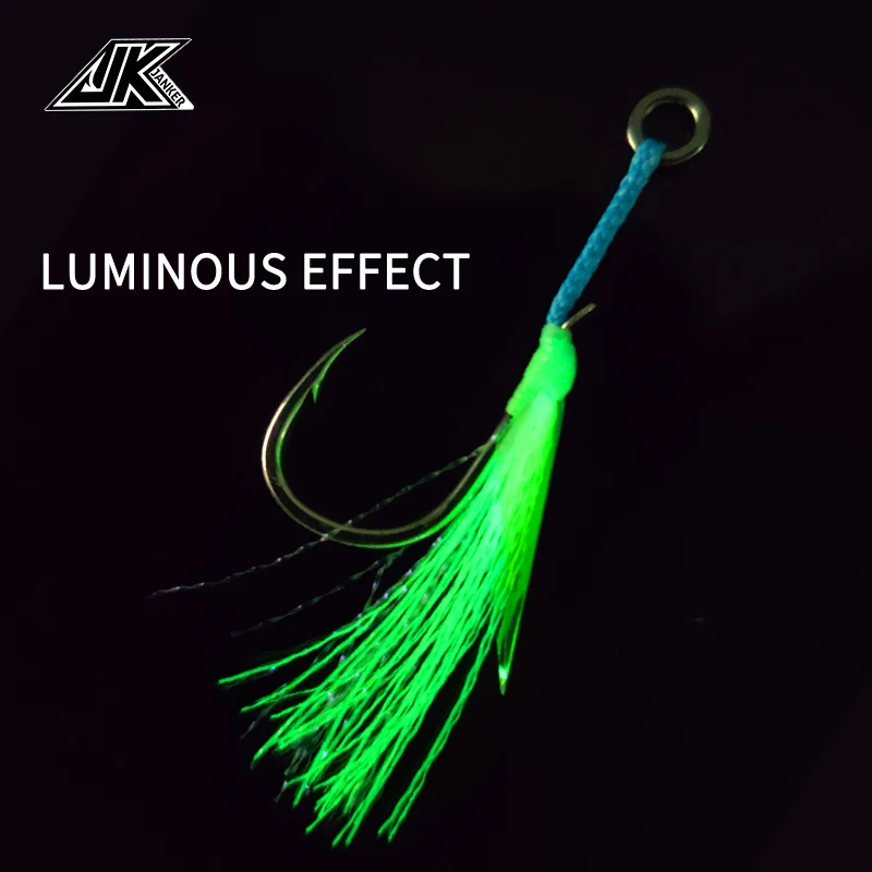 "JK LAS-L Shore Jigging Light Assist 3X Jig Hooks Sea Carbon Japan PE Line Fishhook Glow Silk Fish Hook Lure Fishing Tackle" * Buy Now Just For 4$