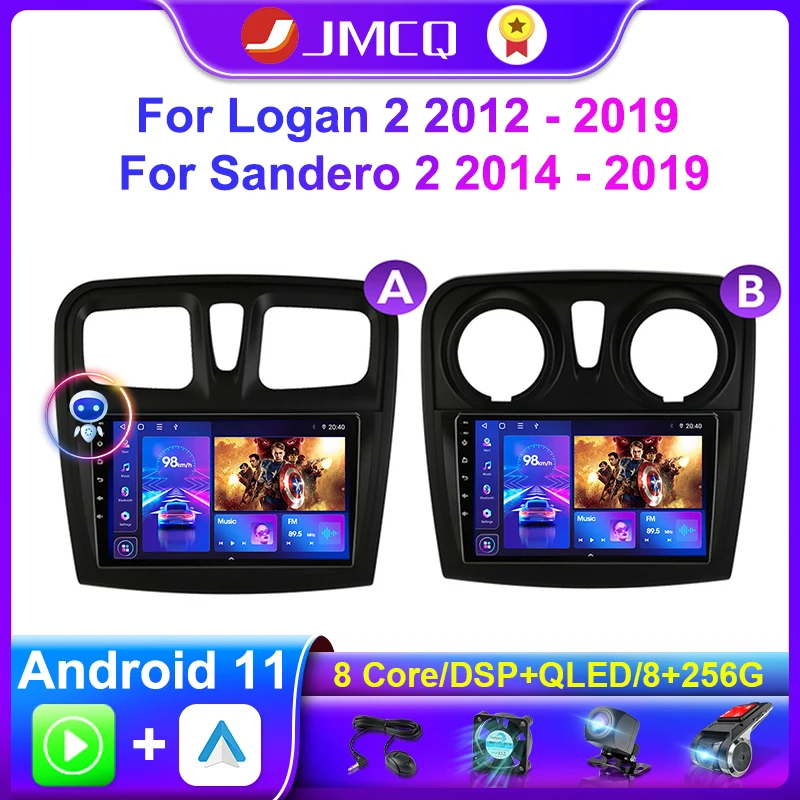 "JMCQ 2 Din Carplay Android 11 For Renault Logan 2 2012 - 2019 Sandero 2 2014 - 2019 Car Stereo Radio Multimedia Player Head Unit" * Buy Now Just For 94$