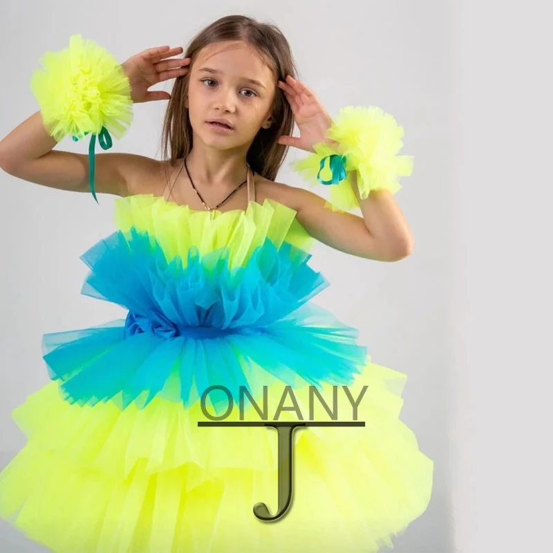 "JONANY Layered Tulle Flower Girl Dress Geogeous Pleated Contrasting Colors Customised Wedding Ball Gown First Communion Ceremony" * Buy Now Just For 48$