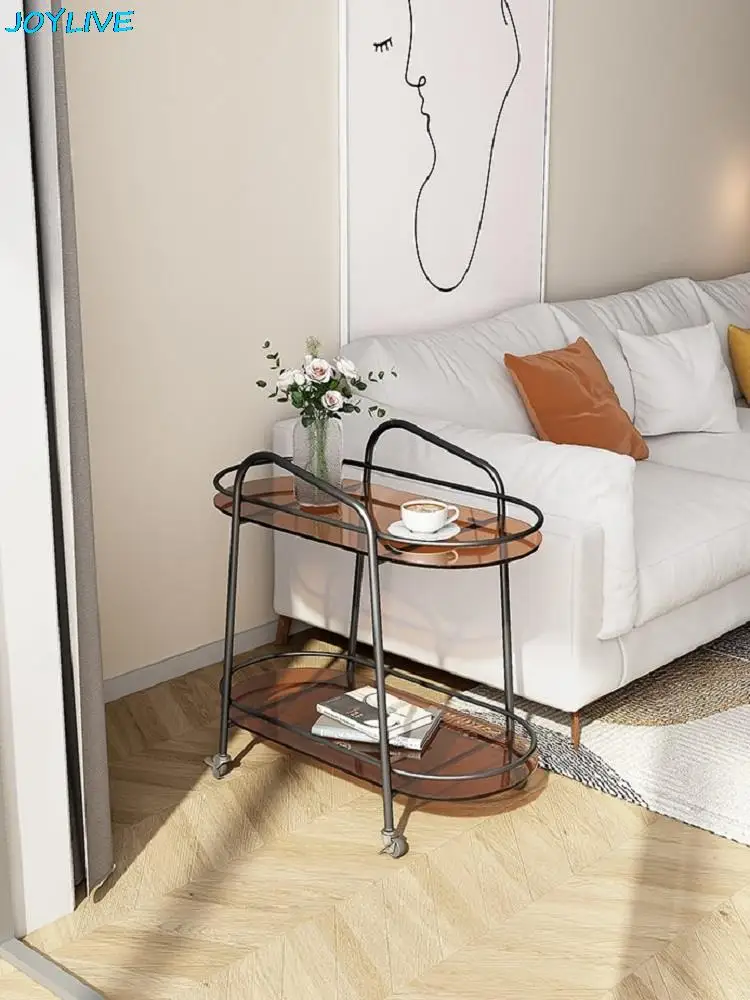 "JOYLIVE Glass Cart Movable Sofa Side Table 360 Degree Universal Wheel Wear-resistant Storange Rack 2022 Home Use Dropshipping" * Buy Now Just For 79$