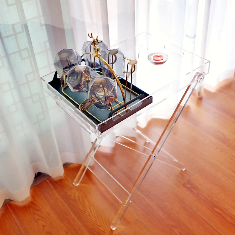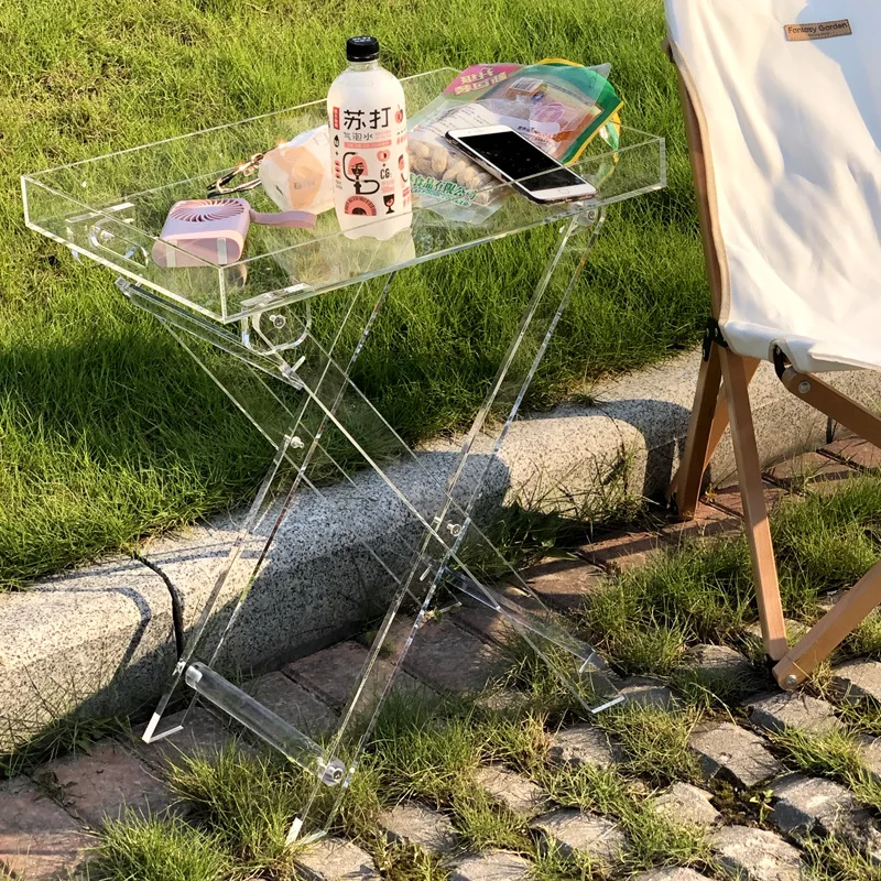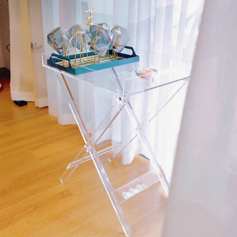 JOYLIVE Transparent Folding Table Acrylic Bedside Table Square Simple Portable Table Home Coffee Table Creative Desk 2022 New - Купить с бесплатной доставкой