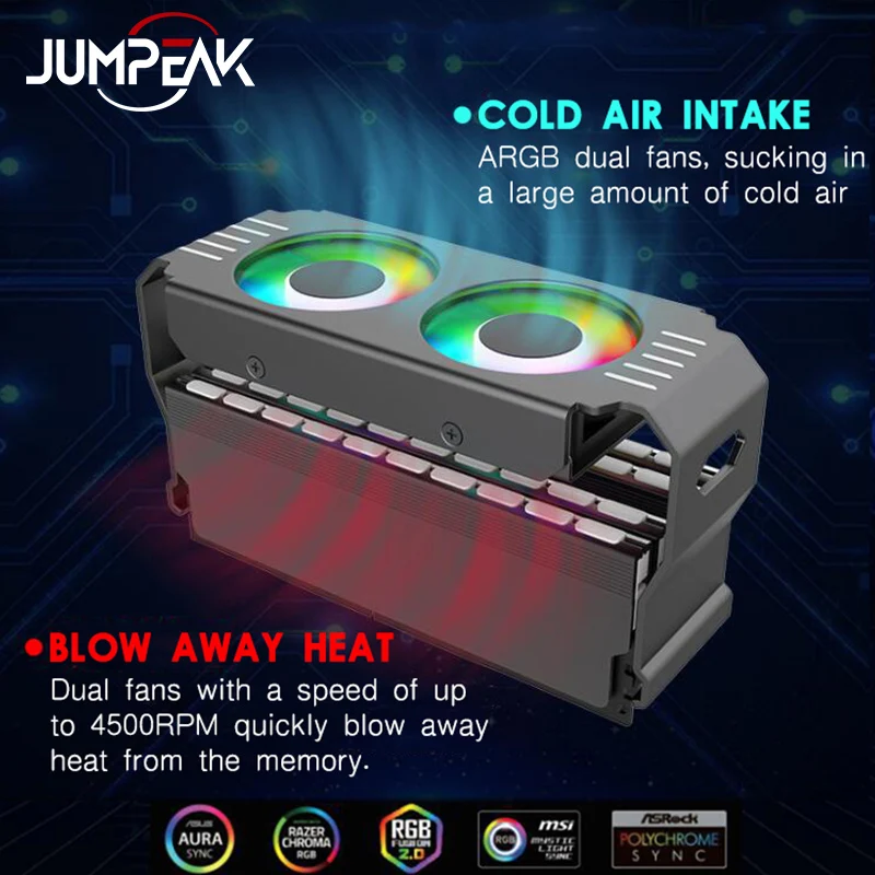 itqGcLYlGUHere you can buy JUMPEAK Computer RAM Memory Module Cooler PC DDR4 DDR5 Overlock Partner Dual ARGB Sync PWM Fans Aluminium RGB Cooling Radiator with free delivery to your post office.