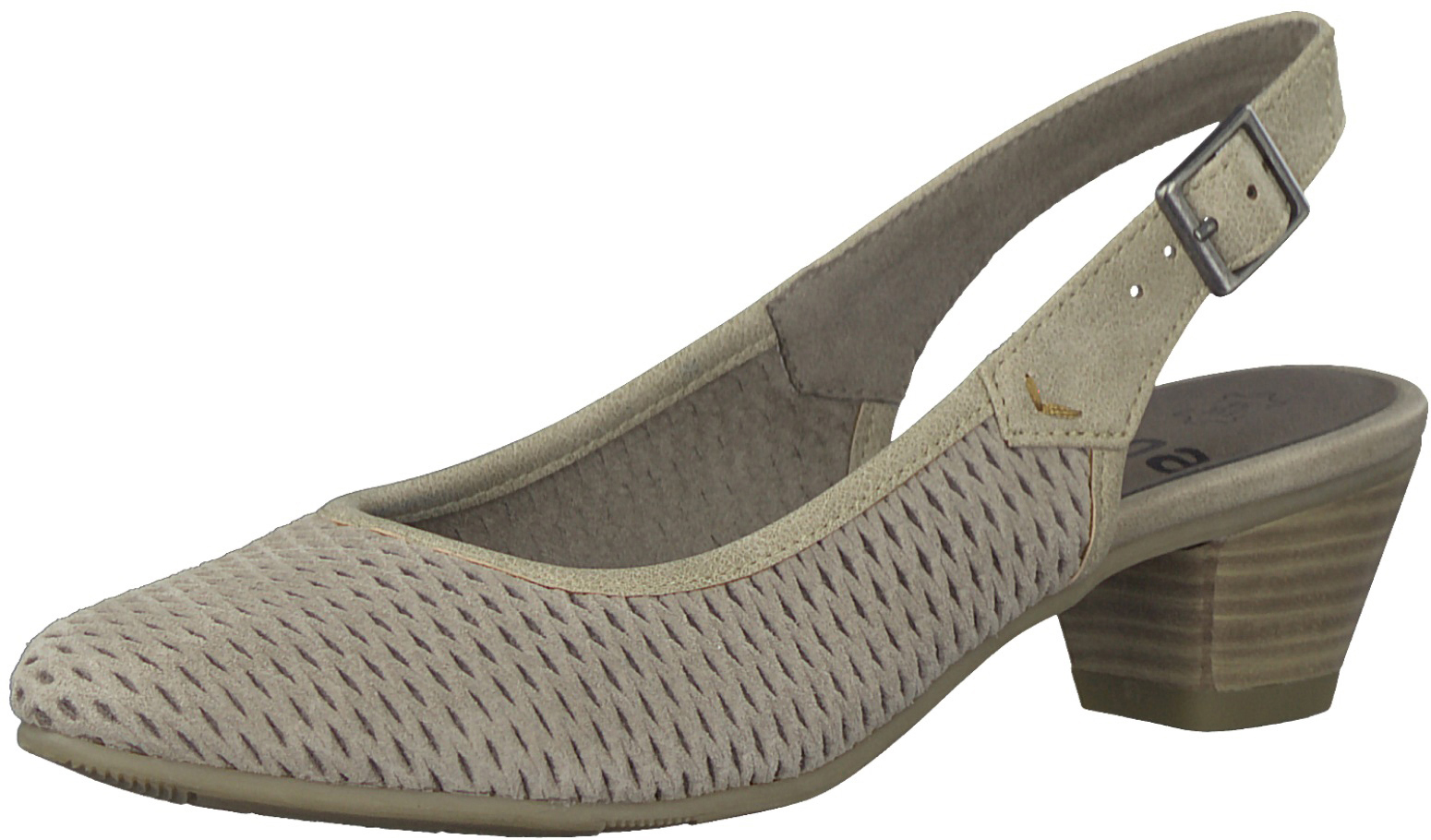 Blonde girl in jeans shorts topless in changing room