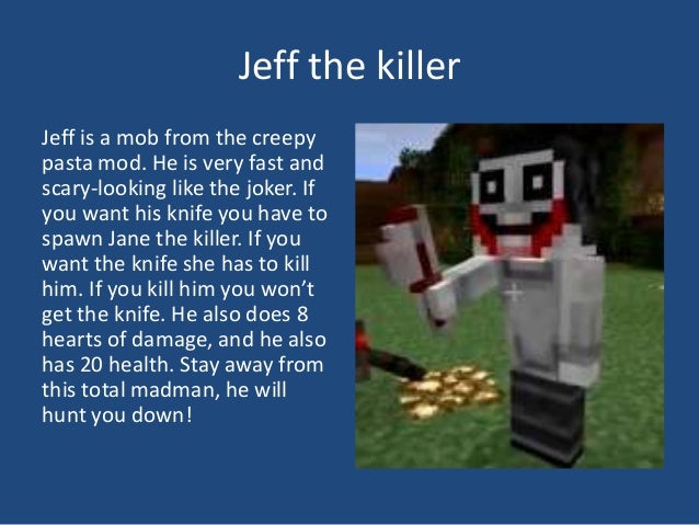CreepyPasta Add-on V3 . 275 . 936 . 50 .3k . The HorrorCraft Add-on brings 5 new items, 5 new discs, and 17 Horror characters to Minecraft . The characters are Jeff the killer, Jane the killer, Slenderman, Sirenhead, Squidward (Squidward's Suicide), Seed Eater, Strider, Eyeless Jack, and The Rake, and many more!